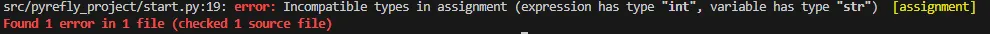 このようにPyreflyを利用すればエディタ上ですぐに型の不整合が起きていないか確認ができますし、コマンドライン上でも実行できるのでCIに採用することも可能です。